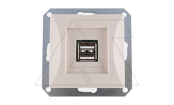OPAL - Зарядное устройство с двумя USB Type A, 110_240V/5V, 1000mA, бежевый артикул: OPBE-USB2